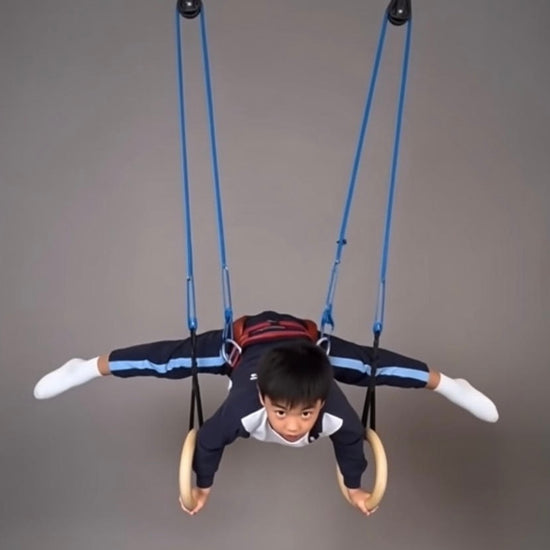 4. Progression confortable : Au cœur de ce système se trouve un harnais unique qui fournit le soutien nécessaire lors des exercices. Les enfants peuvent commencer à un niveau confortable et renforcer progressivement leur force au fil du temps. Cela signifie qu’ils peuvent ressentir les sensations de mouvements avancés, comme la planche, dès le premier jour, même s’ils n’ont pas encore acquis la force requise.
