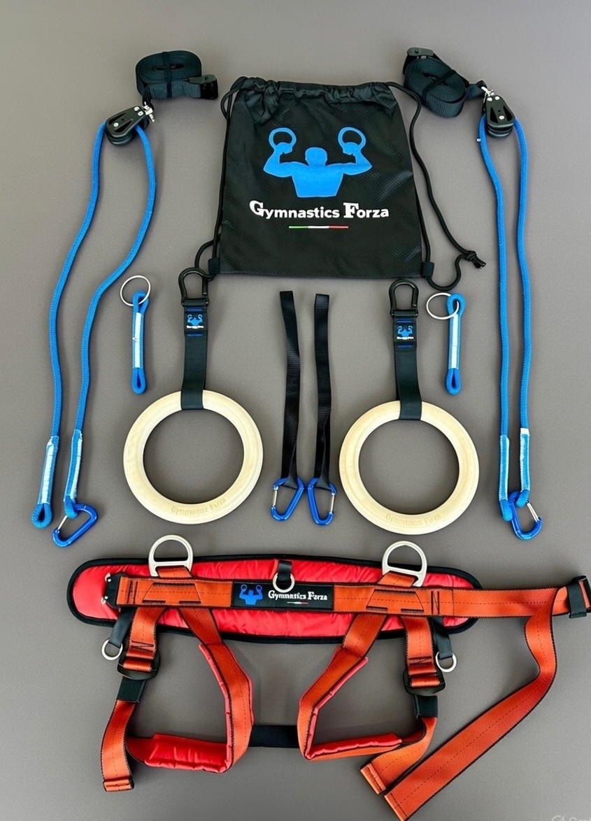 Le système d’anneaux Gymnastics Forza permet aux enfants d’apprendre tous les mouvements de gymnastique et de calisthénie réalisés par les athlètes d’élite sur les rings de gymnastique, les parallettes et au sol, y compris les saltos avant et arrière. Il est spécialement conçu pour permettre une progression graduelle et sécurisée dans tous les exercices de calisthénie et de gymnastique. Avec cet équipement et une pratique régulière, les jeunes utilisateurs peuvent atteindre leurs objectifs de forme physique et développer des compétences avancées comparables à celles des athlètes professionnels.