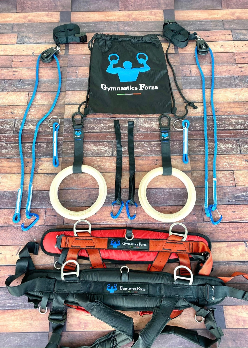 Muscle Up Bar + Air Flare + Flare System + Gymnastics Forza Rings System (Large and Small Harness)