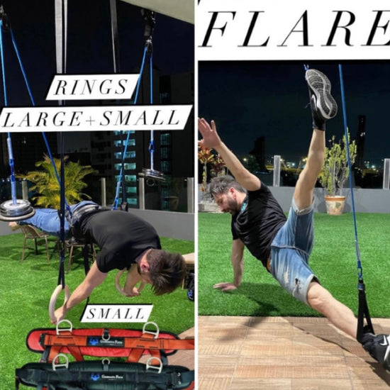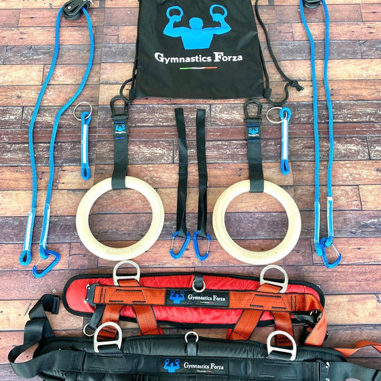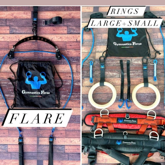 Gymnastics Forza Rings Arnês Grande, Arnês Pequeno + Sistema Flare + Máquina Backflip